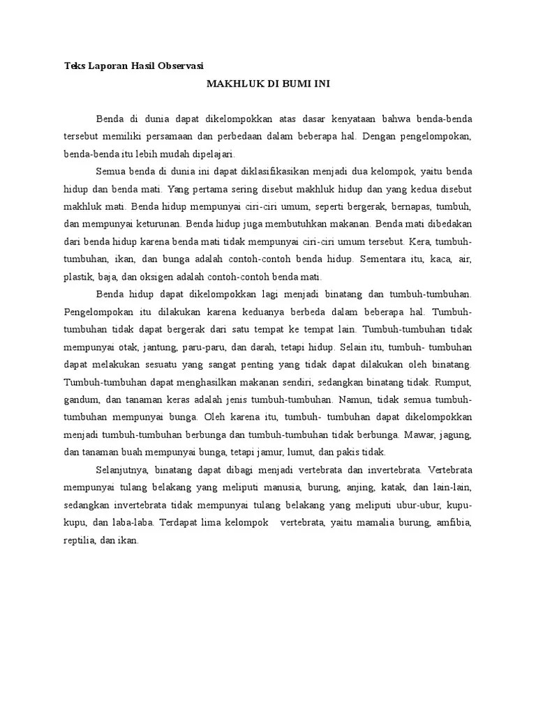 Contoh Laporan Hasil Pengamatan Bahasa Jawa - 14 Contoh Teks Laporan Hasil Observasi Pendek Tumbuhan Hewan Alam - Materi laporan hasil pengamatan kegiatan pembelajaran membacaâ.